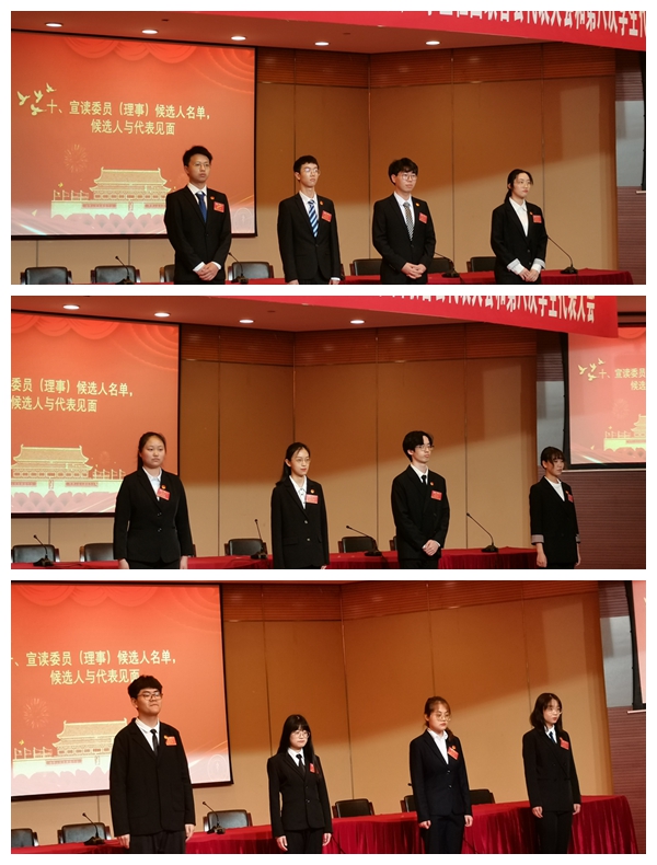 选举环节中会议主持人宣读各组织候选人的简介,四委委员候选人分批次上台和各位代表见面,展现了我部共青团组织昂扬的青春面貌和积极的工作姿态。