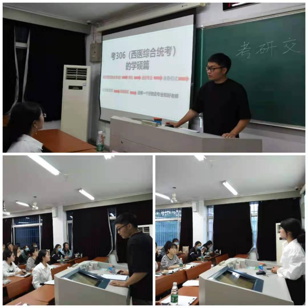 在临床会场中,考研四川大学华西临床医学院骨科学硕吴锐邦同学传授了学硕、专硕和调剂对应的策略。考研中山眼科中心眼科专硕陈烁烁同学结合自身详细考研的方向选择与准备。考研到四川大学华西临床医学院放射影像学专硕方菡同学有初试第一、复试第二的优异成绩,遗憾不能本人亲临现场,由吴锐邦学长代为介绍经验。