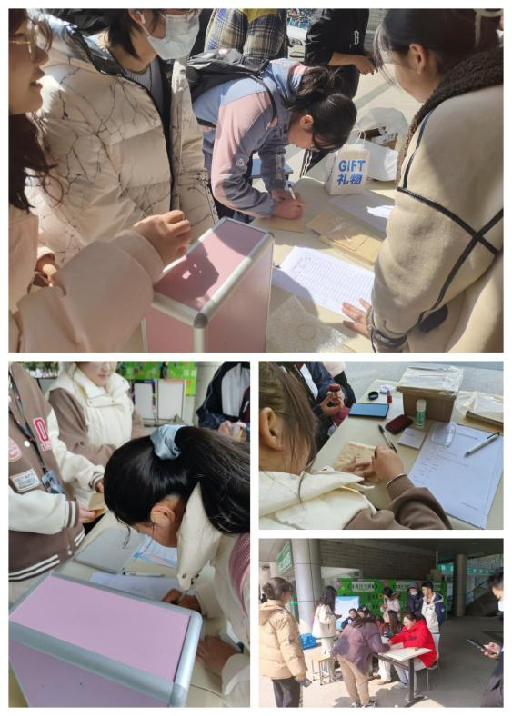 2月26日活动正式开始,提交纸质书信的同学们将信纸带到摆摊地点。在志愿者们的帮助下,装进信封,盖上特色定制邮戳,投递进时光邮箱。对于无法到达现场的同学们,我们提供了电子书信途径,同学们在网站上写下对未来自己的寄语,并在未来定时发送给同学们。信件上对新学年的展望与规划、对大学生活的回忆与感想、对自我的剖析等都暂时封存进了时光里,等待它们的主人在未来的某一天再次启封。