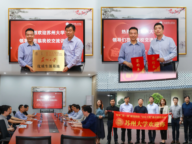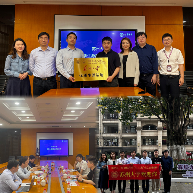 5月19日,招生宣讲团到访了重庆市巴蜀中学、重庆市第八中学、重庆市育才中学,与三校领导、年级主任和任课老师进行座谈交流,充分调研办学情况、学生培养、招宣做法等内容,并在三所中学举行了“苏州大学优秀生源基地”签约和挂牌仪式。