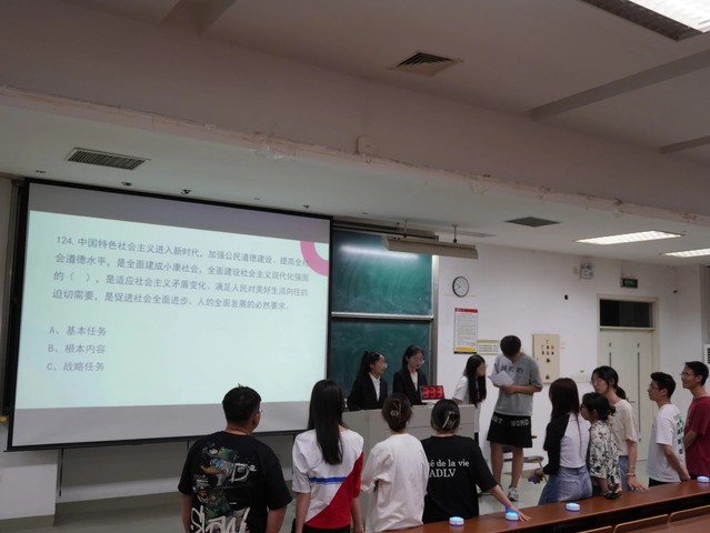 本次党史知识竞赛活动采用分批分组抢答的方式,共计初赛、决赛、加时赛三轮。初赛各批次的小组分别挑选五位学员上场答题,其中一名学员负责抢答。本次知识竞赛的题目涵盖党史、新中国史、改革开放史社会主义发展史等党的知识,范围广且题型多样,充分考验了学员们的知识储备和心理素质。