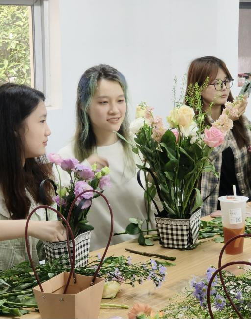 活动接近尾声,每位同学手中都拿着自己独具特色的插花作品,脸上洋溢着满意和欣喜的笑容。插花不仅能让人保持耐心与专注,而且能够放松身心、释放压力,缓解学习和生活中的紧张情绪,带给同学们成就感和自豪感。本次插花活动不单让同学们掌控花卉艺术的能力,提高感受美、欣赏美的水平,还为同学们提供了一个有益于心理健康的平台,通过参与其中,促进同学们的情绪管理能力、创造力和社交能力,增强心理调适能力。