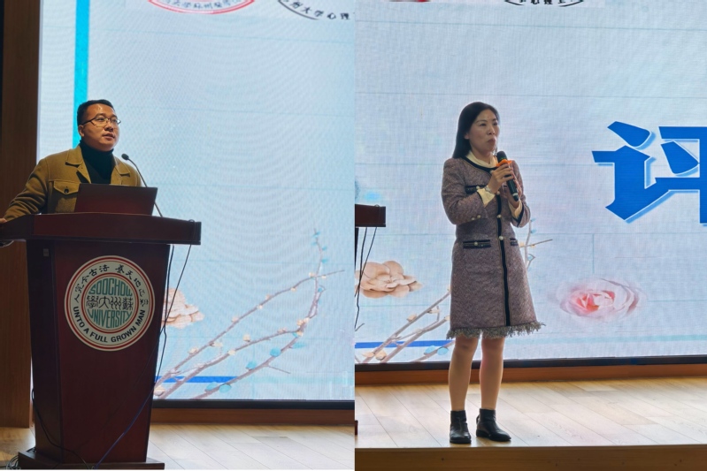 苏州大学心理健康教育研究中心专职教师、中国心理学会注册心理师、注册督导师王平老师、苏州大学苏州医学院团委书记王昌伟老师、苏州大学敬文书院常任导师、心理健康节先进教师任鹏飞老师、苏州大学苏州医学院学工办叶文涛老师、苏州大学苏州医学院学工办吴嘉欣老师出席本次比赛并担任评委。