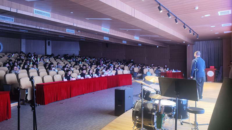 随后,五月天社团和其他各个社团带来了一系列优美动听的歌曲。吉他指弹,乐队演奏,单人独唱……和声回荡,旋律悠扬,和声美妙,营造了音乐的海洋氛围。