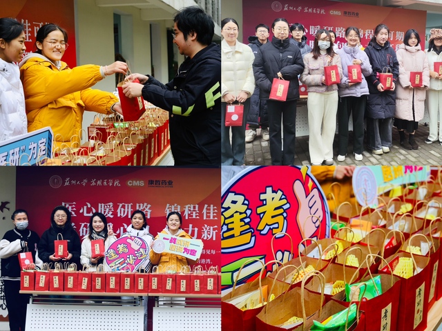 12月12日起,苏州医学院的领导老师们带领锦程社、学生心理卫生协会的同学们在苏州医学院“杏林驿站”一站式学生社区内开展考研送温暖活动。李斌院长为2025届考研学子发放礼包,并代表学院向备考学子表示鼓励和慰问,祝愿同学们取得好成绩,叮嘱大家注意身体,合理安排时间,保持良好的精神状态,以饱满的热情和坚定的决心迎接考试,并表示学院将全力做好考研保障工作,为同学们保驾护航。同学们对学校的关心表达了感谢,表示将带着学校和学院的关怀,铆足干劲,“医”研为定,争取佳绩,同时在暖心寄语墙上留下了美好的心愿和祝福。