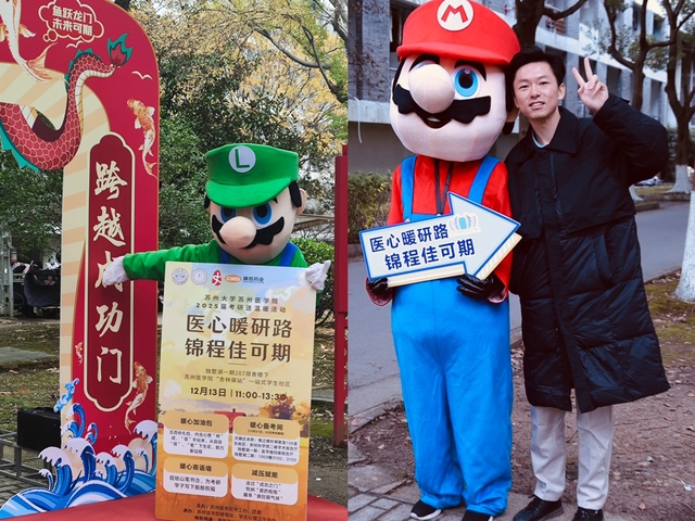 研途漫漫,曙光将至,全国硕士研究生招生考试在即,为深入实施苏州医学院“铸魂逐梦”工程和本科生发展支持中心“攀峰攻坚”计划,帮助苏医学子坚定信心、缓解压力、鼓舞士气,苏州大学苏州医学院举办“医心暖研路,锦程佳可期”2025届考研送温暖系列活动,制作和送出500份暖心加油包,以暖心寄语墙、暖心备考间、减压赋能站等多种形式,为考研学子送去温暖的问候和祝福。苏州医学院党工委书记钱福良、苏州医学院执行院长李斌,苏州医学院党工委副书记、副院长孟玲玲及2025届毕业生辅导员老师们参与了本次活动。