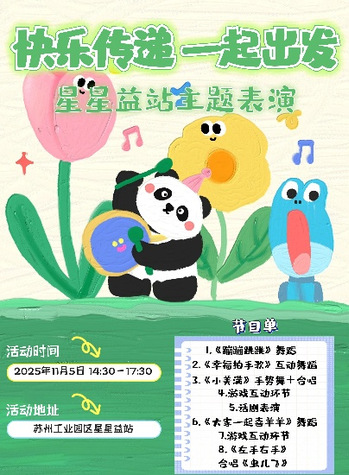 “快乐传递,一起出发”星星驿站主题表演,在欢声笑语中温情落幕。这场活动犹如一首感动的交响曲,既为“星星的孩子”带去了灿烂的笑容,也为苏州大学关爱儿童公益协会的志愿者们刻下了成长的印记。从前期的悉心筹备,到现场的温情守候,再到落幕时的依依惜别,每一帧画面都写满了故事。现在,就让我们循着光影的轨迹,共同重温这段充满爱与欢笑的旅程!