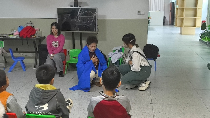 此外,现场还精心安排了温馨的问答互动与趣味小游戏。问答环节中,志愿者们耐心倾听、温柔引导,鼓励孩子们敞开心扉,畅所欲言。原本的生疏与沉默,在真诚的交流中渐渐消融。随后的“丢手绢”游戏更是将气氛推向高潮,孩子们银铃般的笑声洒满现场,大家在追逐嬉戏间手拉手,为了共同的目标而努力,彼此的情谊也在快乐的协作中迅速升温。