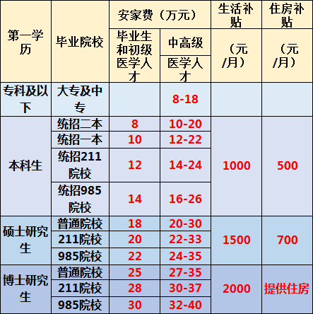2. 一次性安家补助+按月发放(学历补助+规培生补助+住房补助);