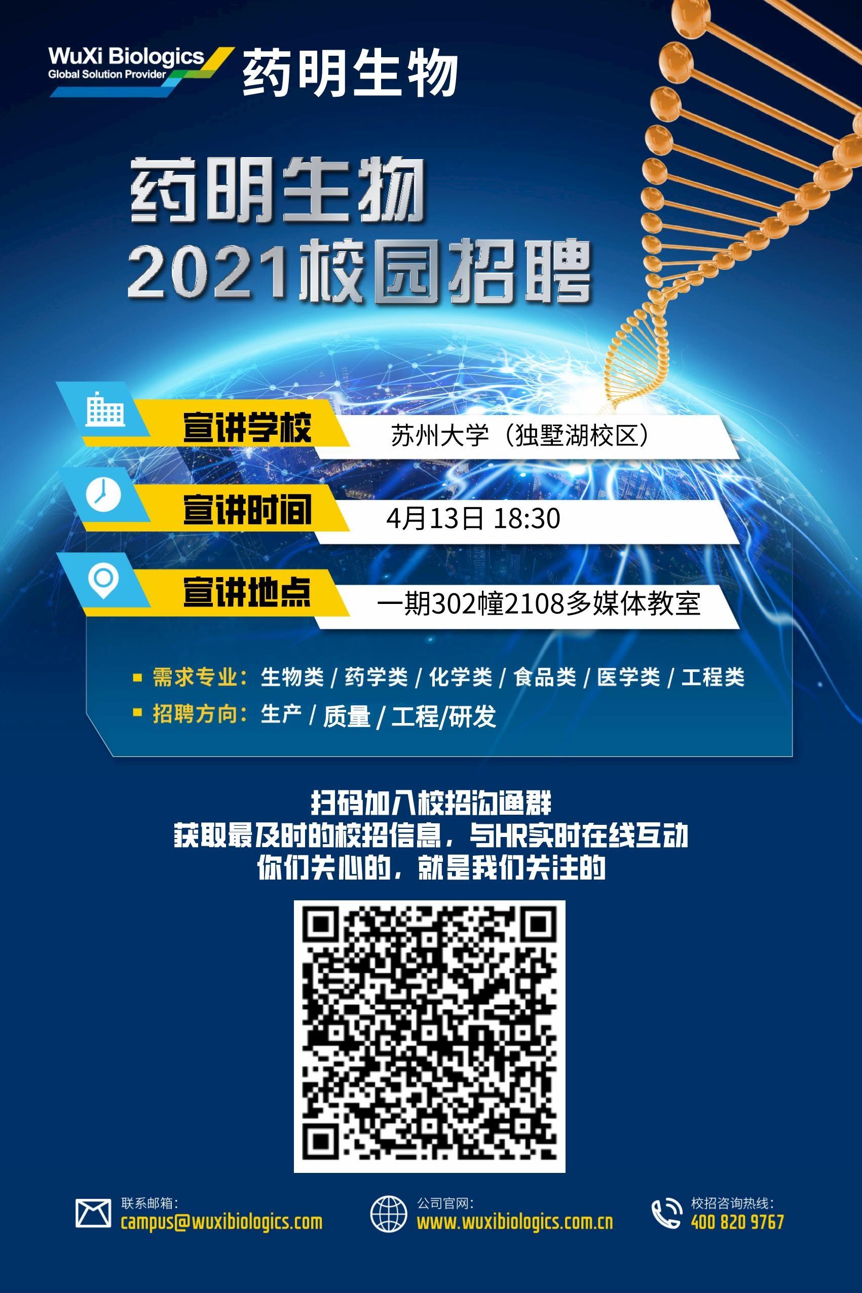 【药明生物2021春季校园招聘】