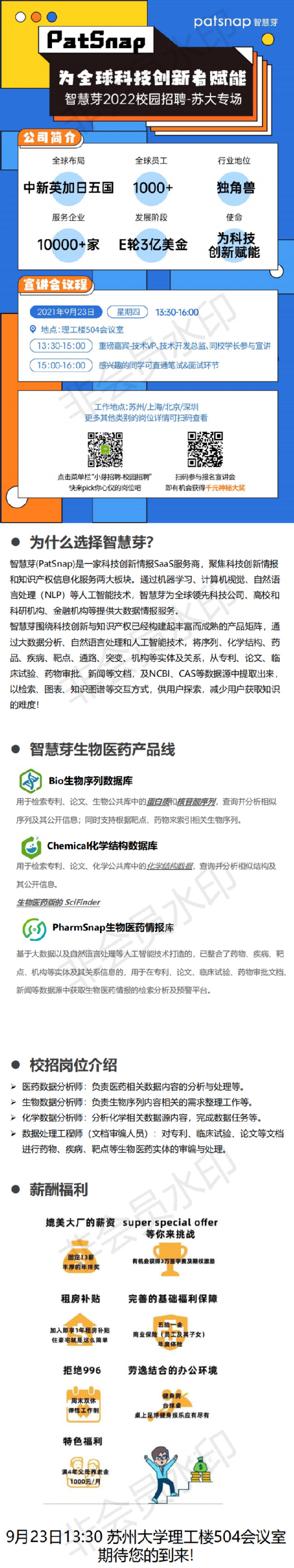 【招聘&9月23日宣讲信息】智慧芽(PatSnap)2022校园招聘